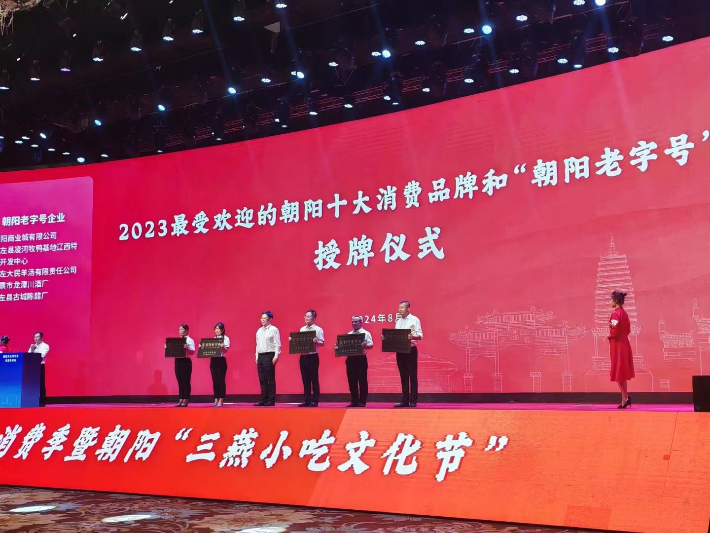 &n∏ bsp; 2024年(nián)8月(yuè)28日(rì)朝陽市(shì)舉行(xíng)了(le)& ♦隆重的(de)“2023最受歡迎的(de)朝陽十大(dà)消費(fèi®∑§)品牌和(hé)‘朝陽老(lǎo✔)字号’授牌儀式”,朝陽市(shì)委書(shū♠ )記單義向上海新歐尚超市有限公司嘉定店頒發了(le)“朝陽老(lǎo)字号&rdqu₽∏•£o;牌匾,朝陽市(shì)政協主席劉朝震向朝陽商業(yè)城(chéng)超↓≤♠↑市(shì)連鎖有(yǒu)限公司頒發了(le)&ld•§πquo;十大(dà)商貿品牌”牌匾。